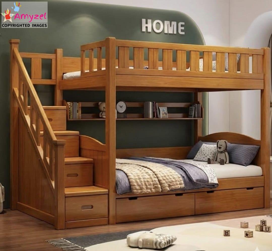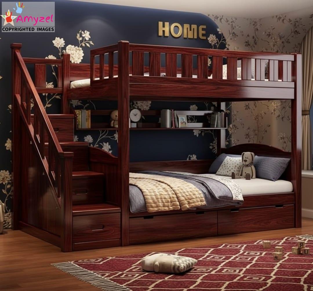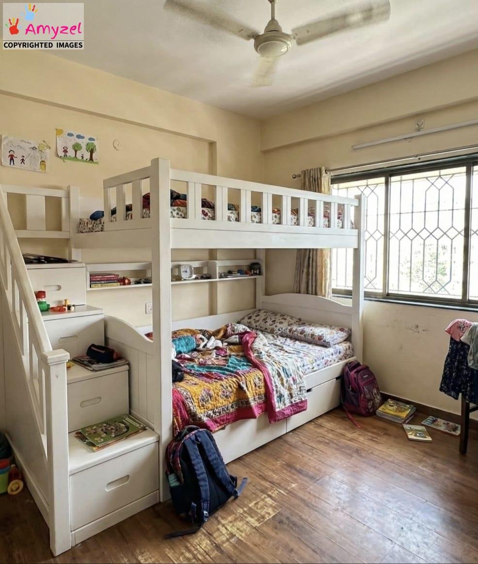 This is easily the best kids’ furniture purchase we’ve made. The stairs are fantastic—much safer than a traditional ladder for our little one climbing up to the top bunk. The fact that the stairs double as deep, built-in storage cabinets is brilliant! It saves so much floor space, and the Sheesham wood is high quality. It truly is a space-saving powerhouse and looks amazing in the room. Hats of to team Amyzel.