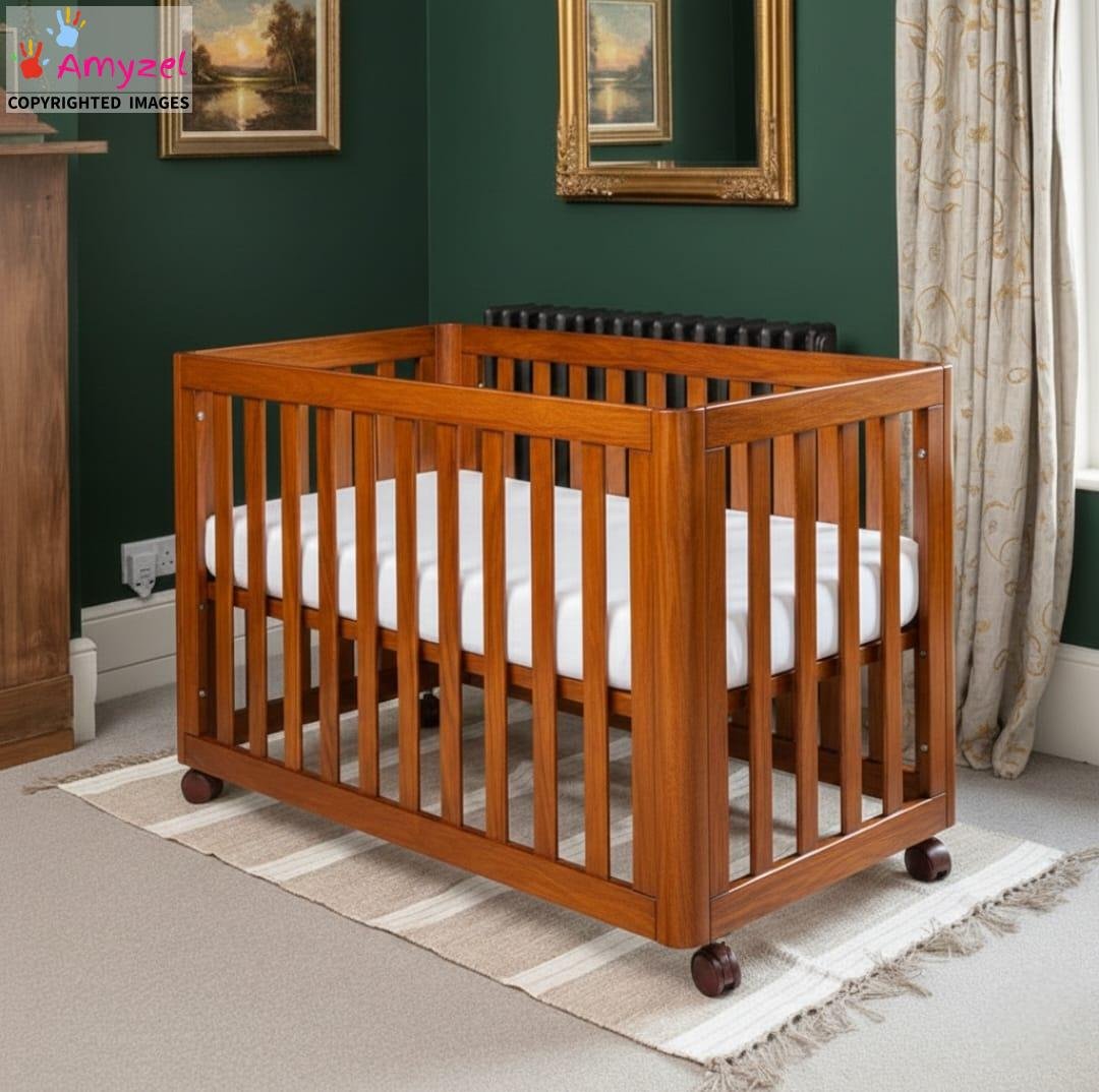 Created for families seeking long-lasting nursery furniture, this sheesham wood infant crib combines classic design with dependable construction. Built from solid Sheesham wood, the baby bed with wheels offers natural strength and stability, making it a reliable solid wood baby cot for everyday use during the early months.