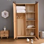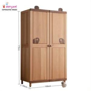 Designed with space-efficient dimensions, this wooden wardrobe fits well into standard bedroom layouts, making it suitable for both compact and larger rooms.